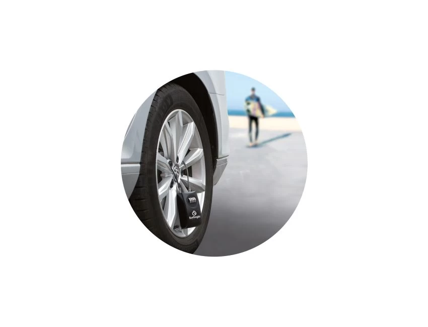 – Vous pouvez facilement l’attacher à l’anneau remorque sous votre voiture, à la galerie fixée au toit, à une jante fixe ou ailleurs